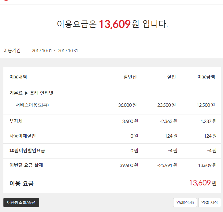 지금 신)인터넷뭉치면 올레 저 결합할인이 없어져서