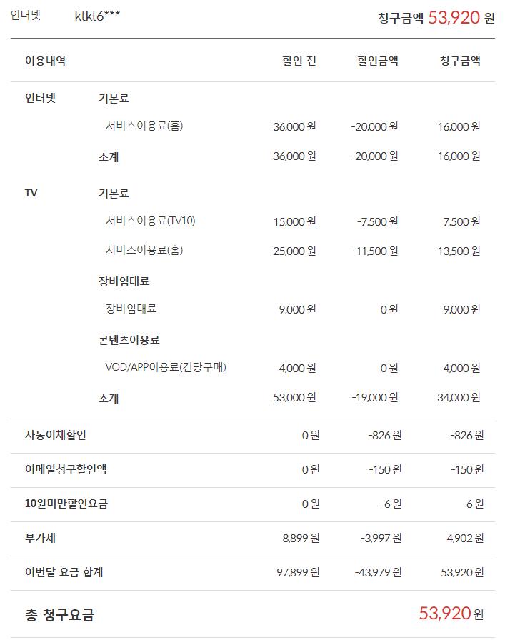 KT 인터넷, TV(2회선) 이용 중 입니다.