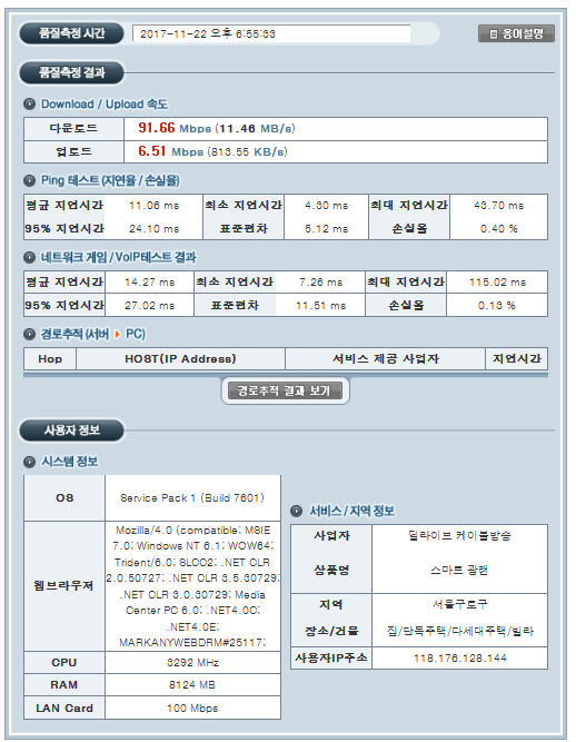 메이저 통신사의 인터넷이라고 해도 품질이