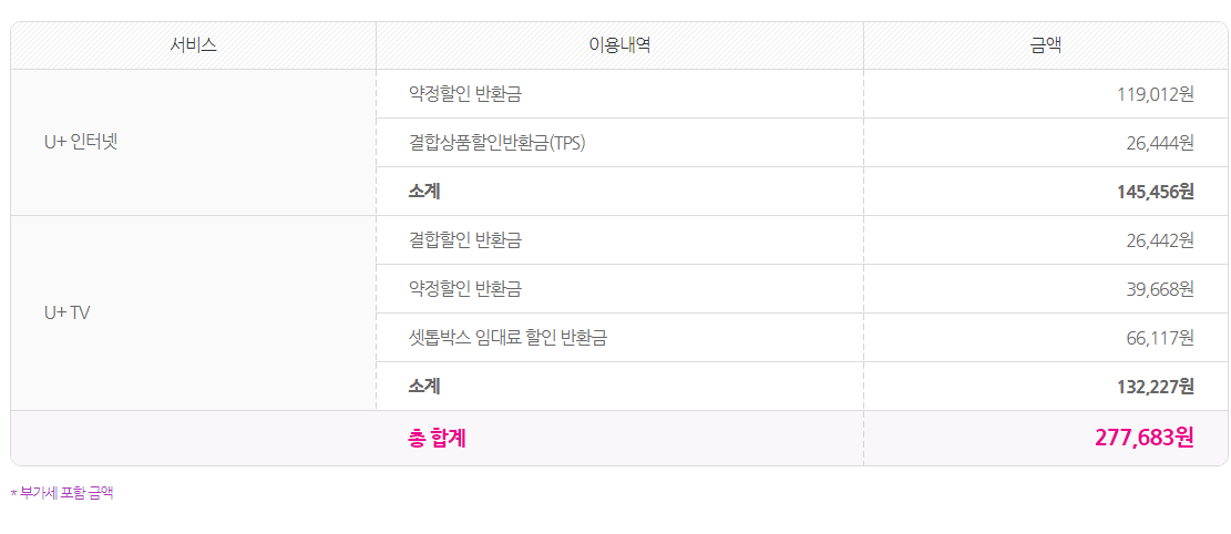 유플러스 예상해지 비용이 사진과 같이 나왔습니다.