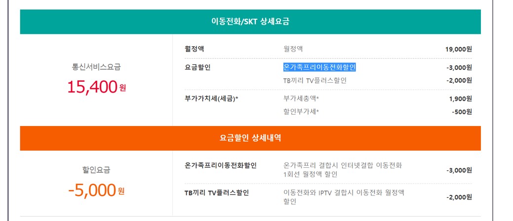 온가족프리 vs 온가족플랜 중 유리한 결합상품이 달라지지만