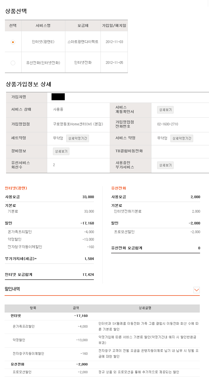 오홋! 이미 인터넷+핸드폰 결합으로 요금할인을 받는 것이
