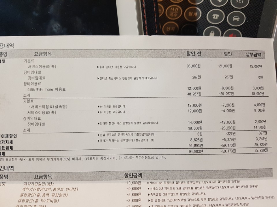 본가에서 아버지 명의로 인터넷+TV를 사용중이십니다. 어떤 요금제 인지 확실치 않아 본가에서 사용하는 요금 명세서를 첨부해요!