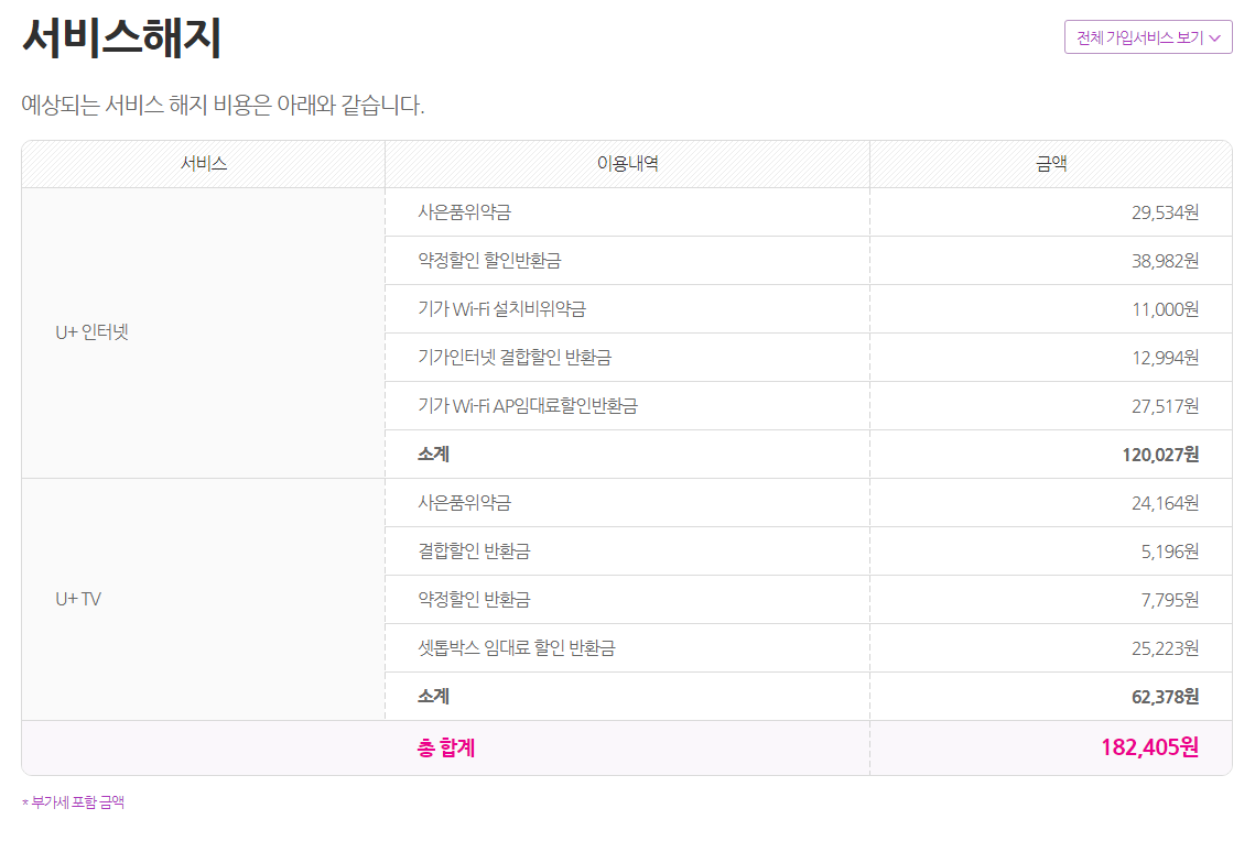 본사 홈페이지 통해 해지 위약금을 확인해 주시겠어요?!