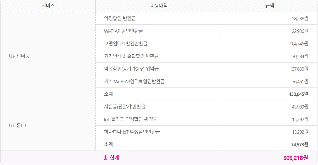 인터넷과 IoT뿐인데 위약금이 많이나와 저도 깜짝 놀랬습니다만..!