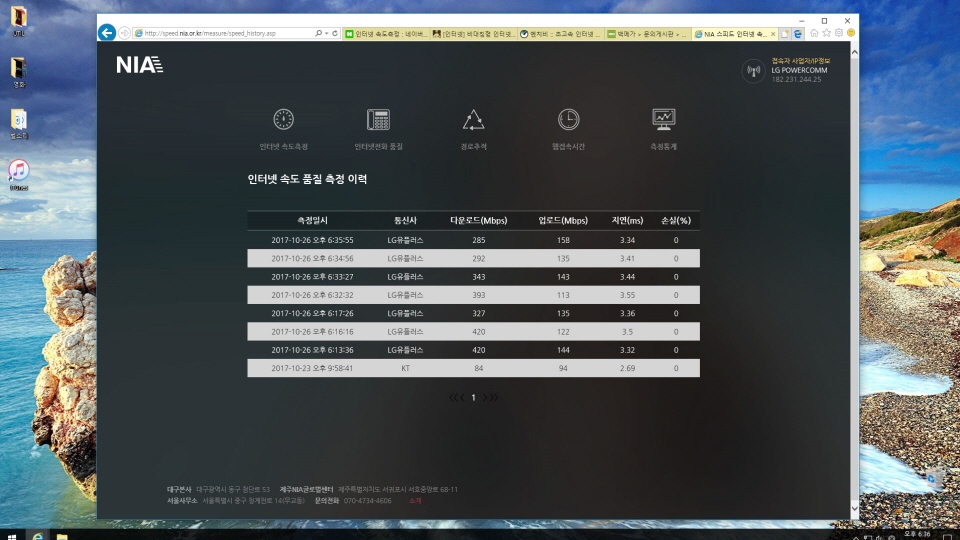 다운로드 속도에 비해 업로드속도... 현저히 느립니다... 안습입니다...