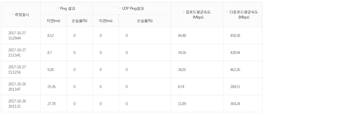 지속적으로 측정했던 인터넷 속도의 평균값이
