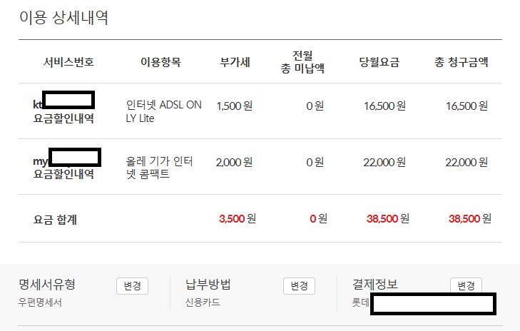 제가사용하는거는 위에보신 KT인터넷 1회선, 폰 2대 sk 사용중입니다. 추가적인 먼~ 가는...