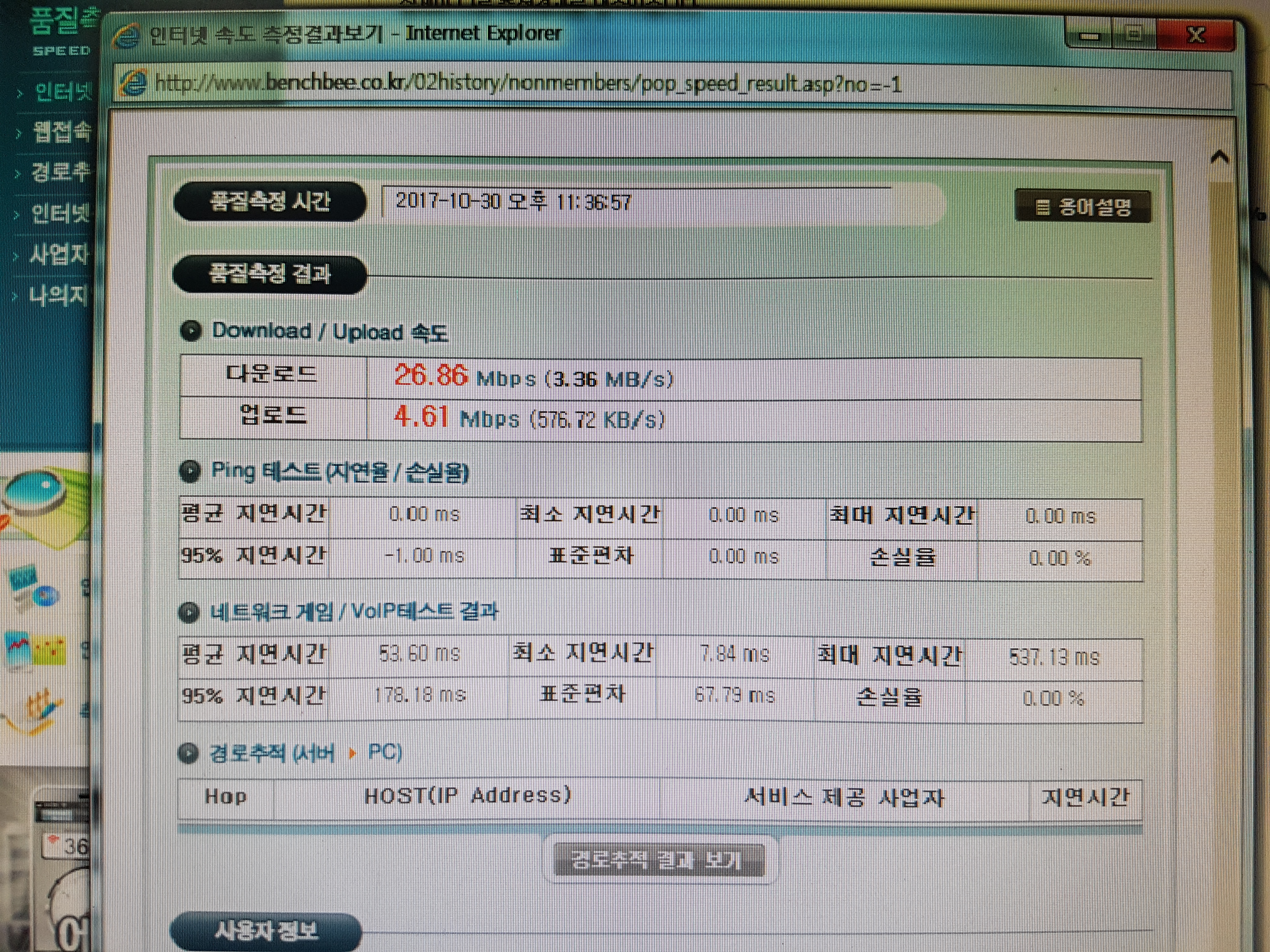 100메가 인터넷 속도도 그리 좋지는 않았는데,
