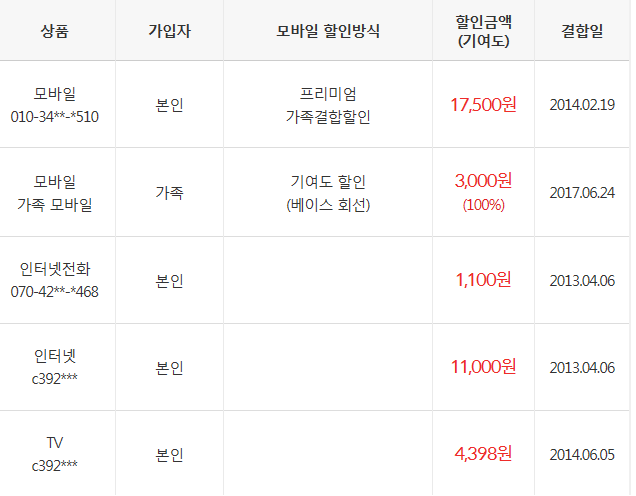 1. 현재 KT 프리미엄 가족결합 + 총액 결합할인 적용하여 인터넷 + TV + 휴대폰(2회선, 둘다 LTE 선택 76.8) 이용하고 있고