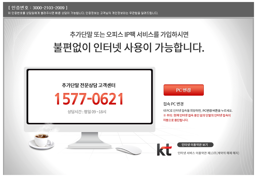 고객센터에 전화 하니 PC 1대 사용으로 계약이 되어 있다며 가입 담당자와 통화 해야 한다는