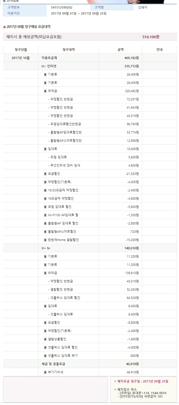 와이파이나 모뎀 등등 기타 장비들 위약금도 포함되어 있어서 더욱 규모가 커졌고요.