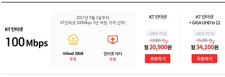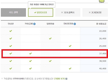 다시 확인하신다면 인터넷은 일반인터넷(100메가) 기준인지,