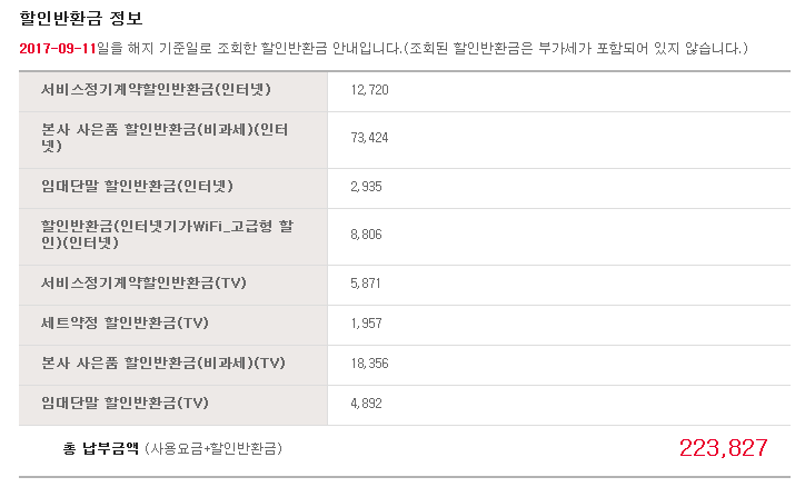 SK쪽에 조회해보니 할인반환금이 이렇게 나옵니다.
