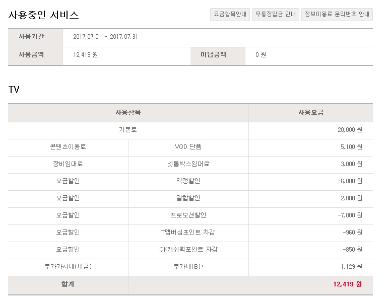 해서 다달이 납부하실 월 요금은 총 37,400원이에요~!