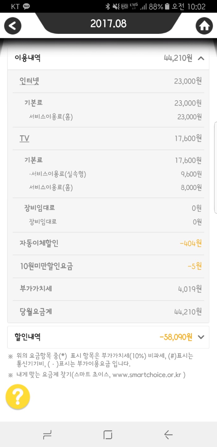 핸드폰은 현재 kt사용중이고 결합되어서 1500원인가 할인중이라고 합니다