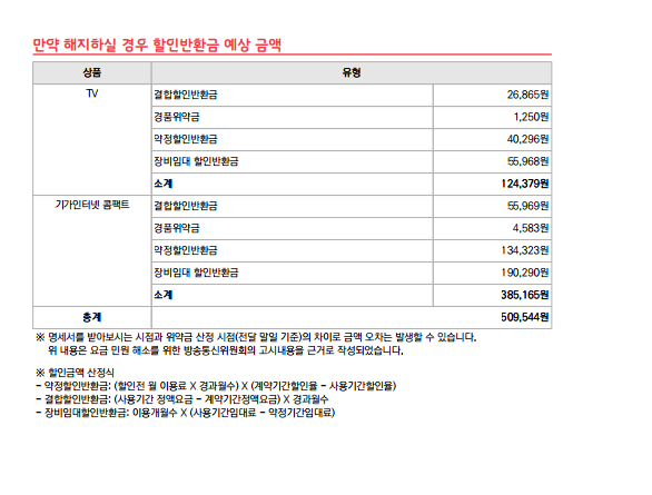 경품 위약금이 얼마되지 않아보이는데