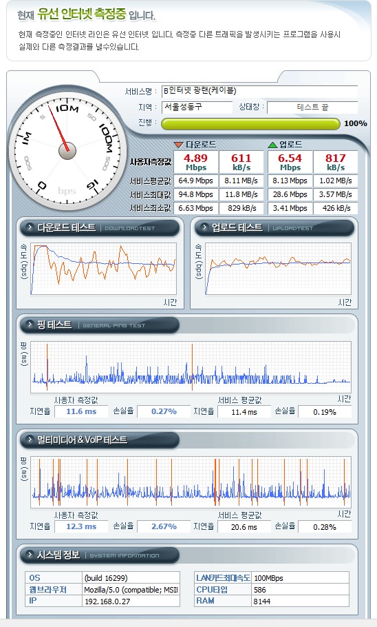 역시나 SK인터넷은 "비대칭형"으로 제공되고 있네요ㅠ