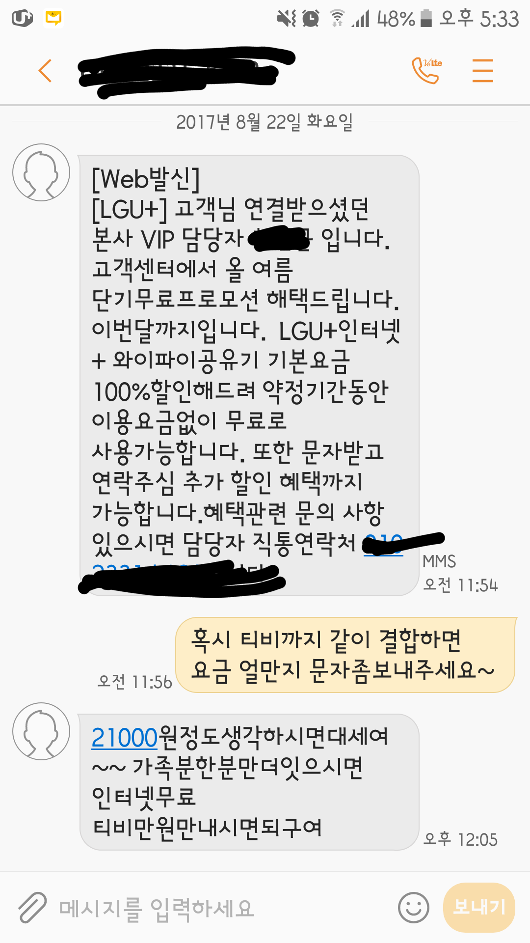 또하나!! 인터넷만 LG로 쓰시고 + 폰을 결합하실때