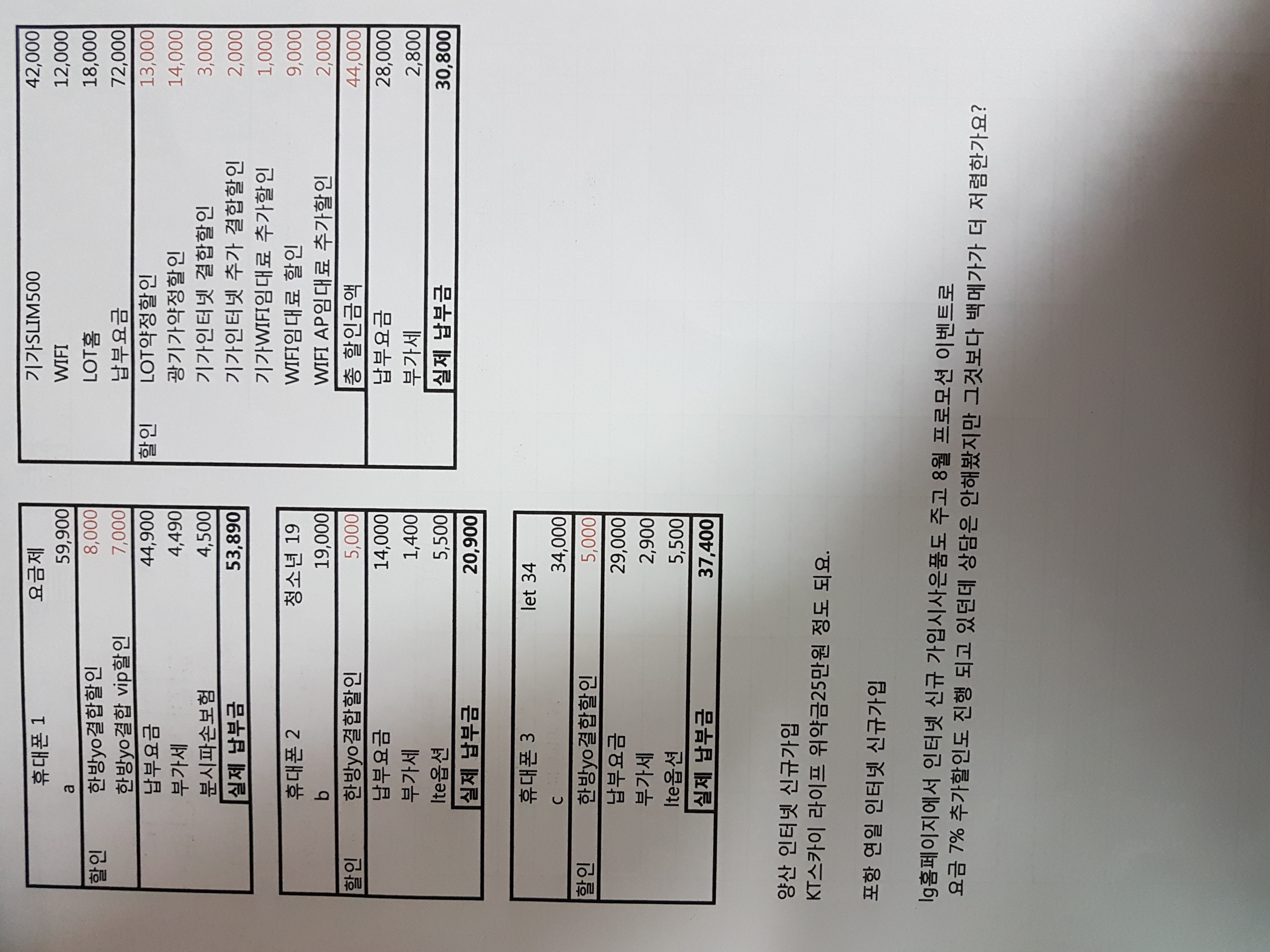 이중 한쪽은 폰결합 할인을 적용받으실 수도 있어