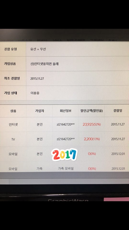 1년 8개월 사용(~18.11.26 까지 약정)했구요, 월요금은 18,500원 정도 나옵니다(인터넷 + TV)