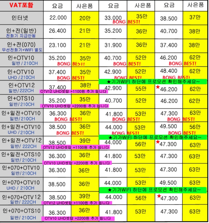 - 인터넷 + TV는 함께 가입할 때 가장 이득이랍니다!!