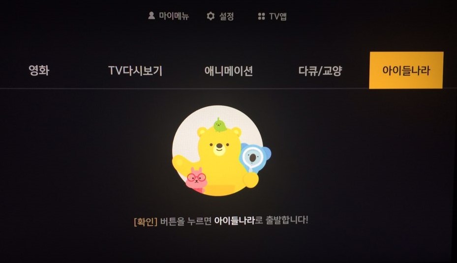 홈 메뉴에 -> "아이들나라"가 추가되어 있을텐데요..!