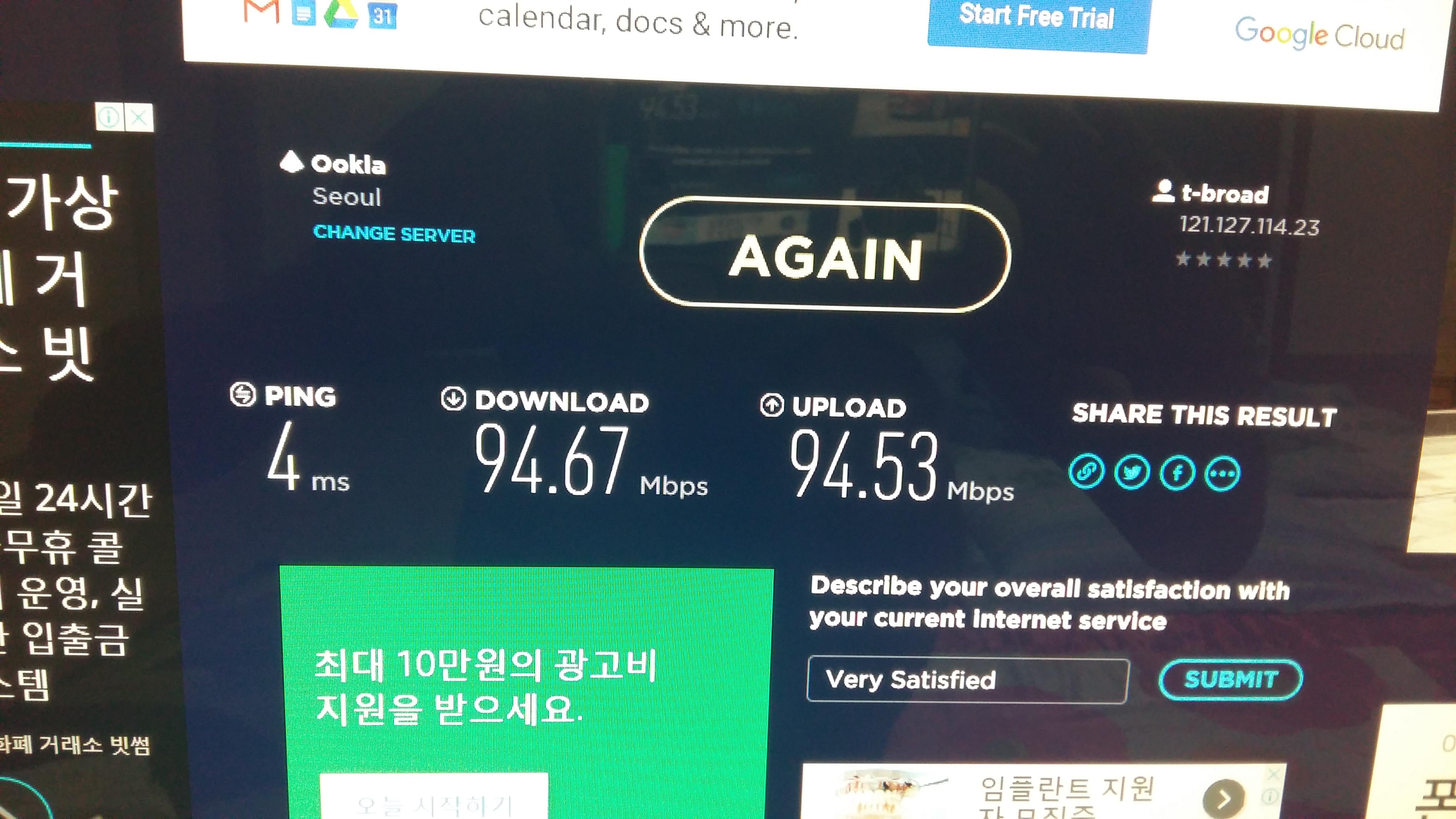 인터넷 원천속도는 아~~~주 좋습니다 +_+