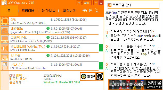 다만.. 사용 중이신 컴퓨터 사양을 보아하니