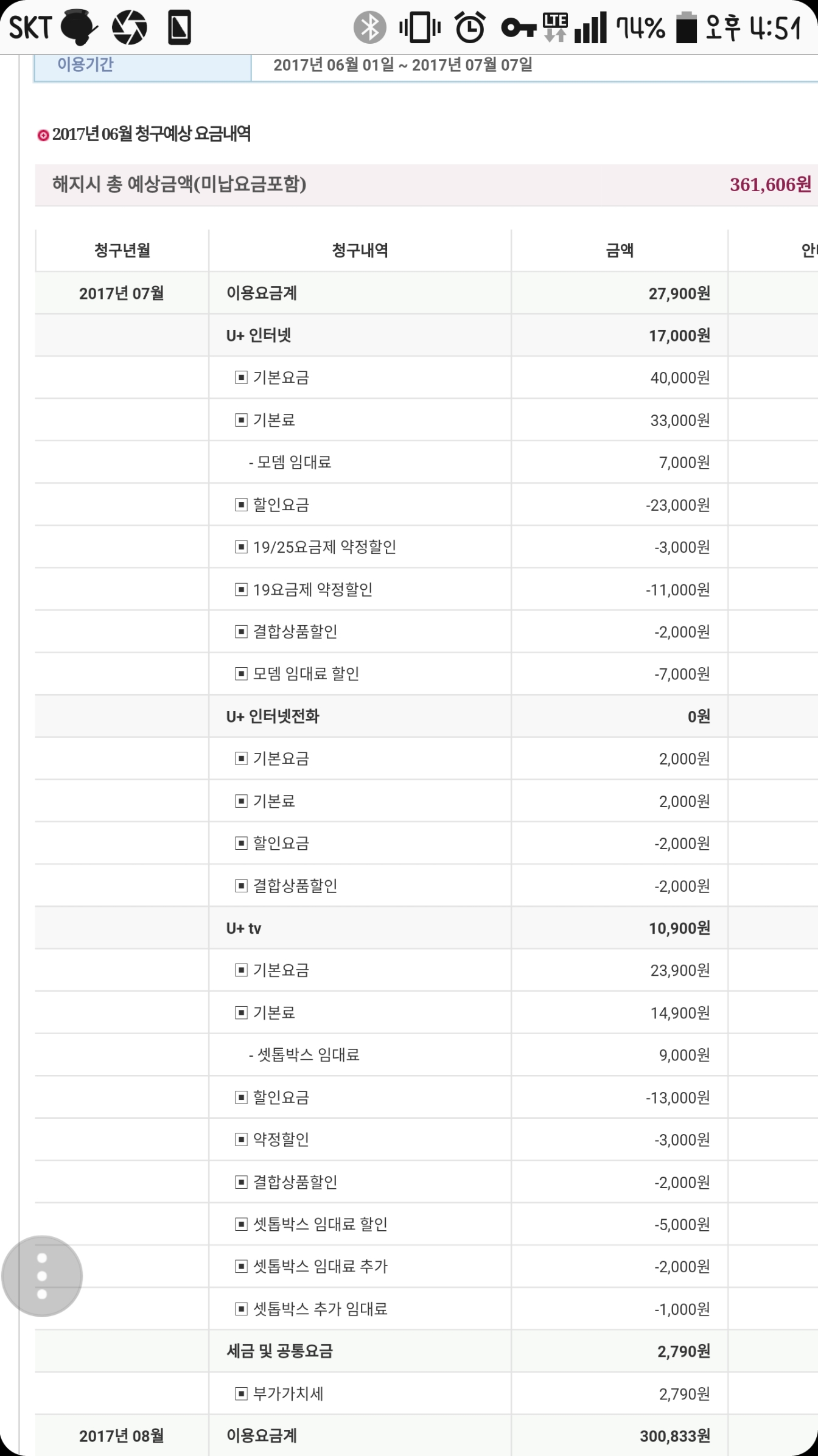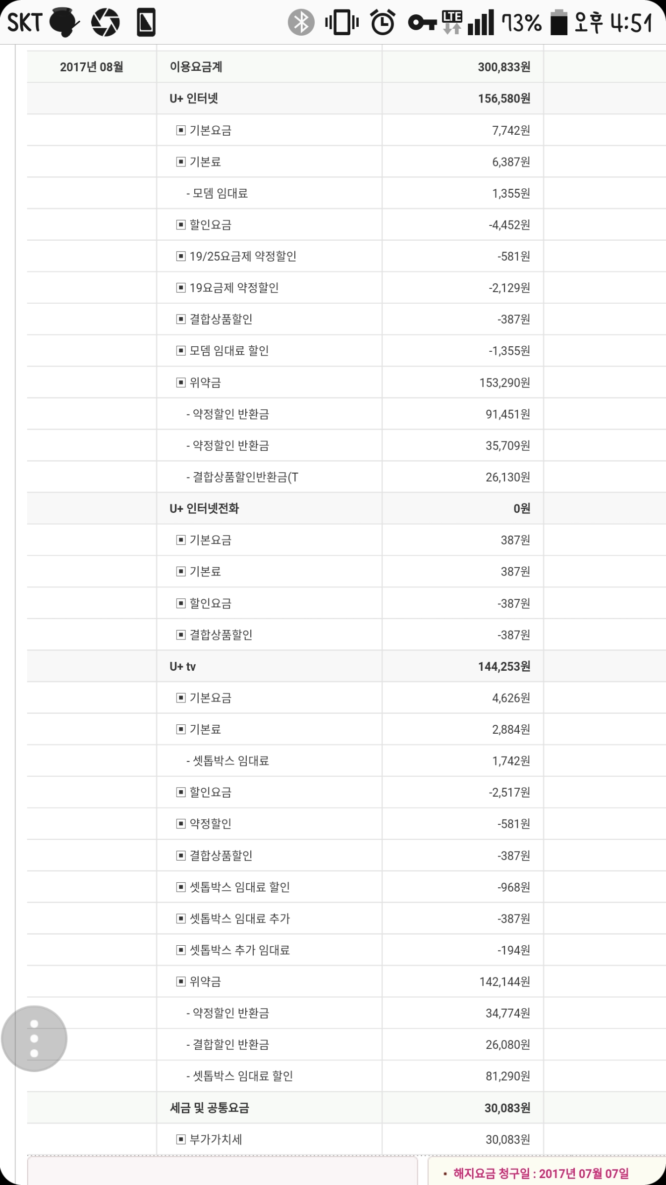 현재 사용중인 인터넷 위약금인데요... 해지시 위약금 상세내역을 보내달라고 해서 받았습니다.