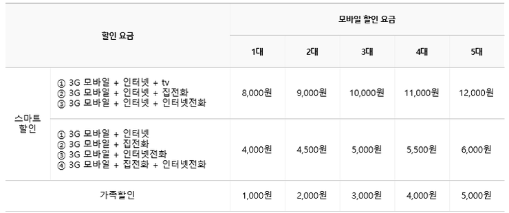 => 3G 뭉치면 올레에서는 2,200원의 할인 혜택이 줄어들지만