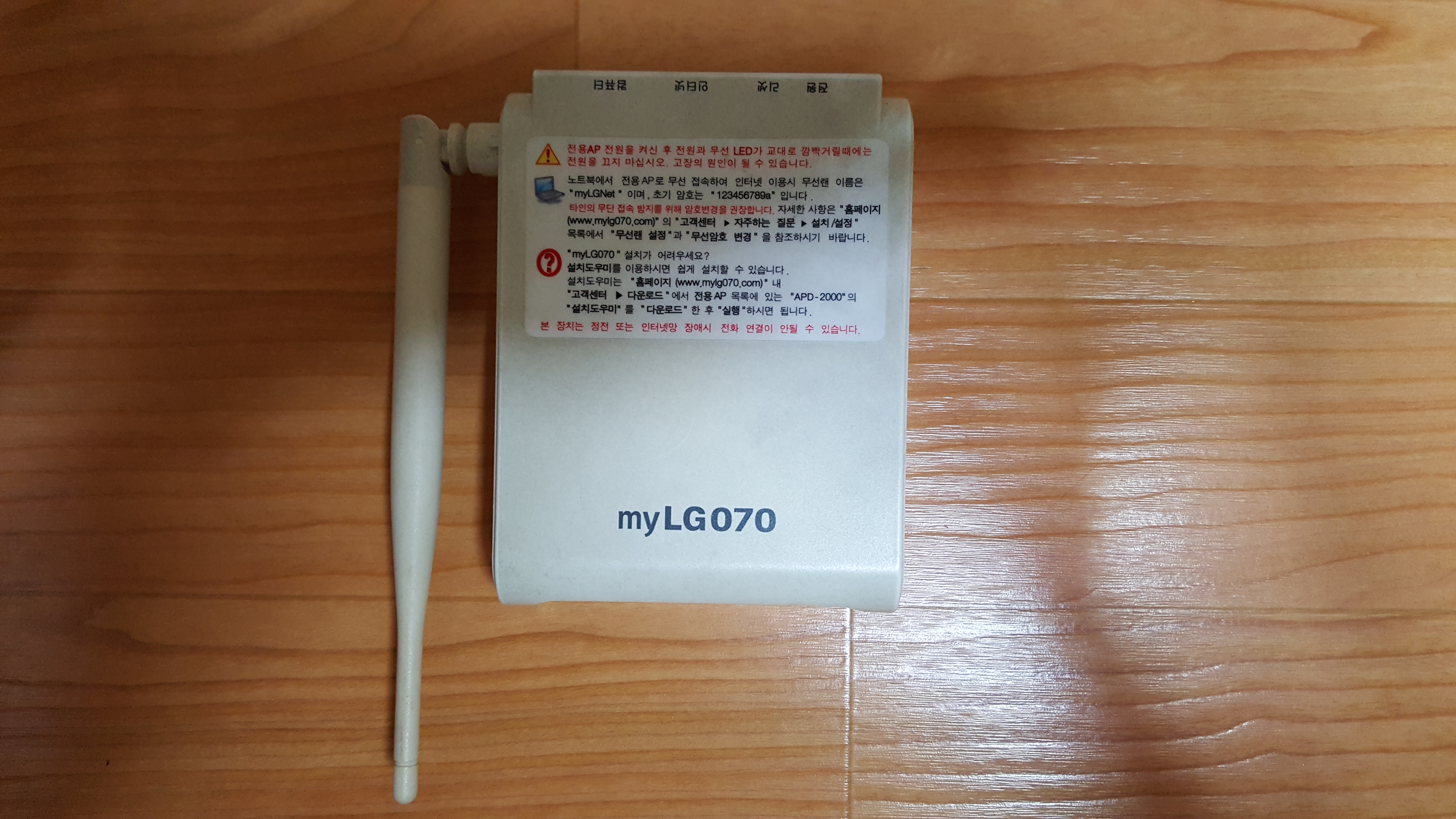 4. 연결은 벽에서 나와 노트북에 직접 연결상태입니다. 와이파이 얘가 문제인데요 제가 개념을 잘 이해하지 못해서인지 몰라도 예전에 앞에는 myLG070, 뒤에 보니까 AP라우터(무려 2009.10 제조)라고 흰색의 납작한 물건입니다.