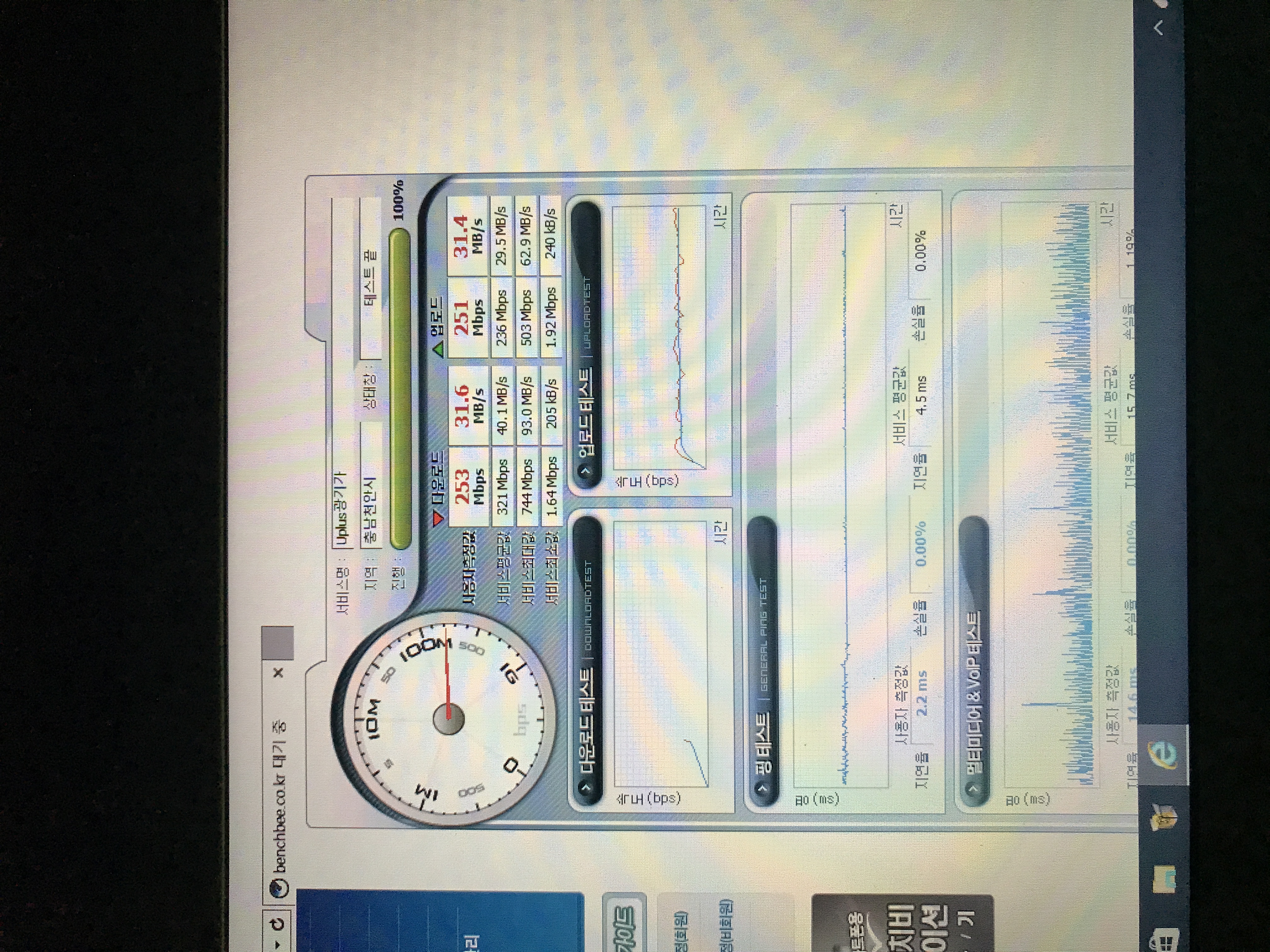 컴퓨터에 랜선이 연결하고 속도를 측정해 주시면 되고요~