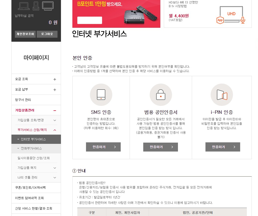 SKB 홈페이지로 접속하셔서 [마이페이지]에서 직접 인터넷 부가서비스를 해지하실 수 있답니다 ^ㅡ^*