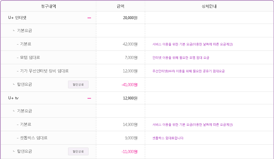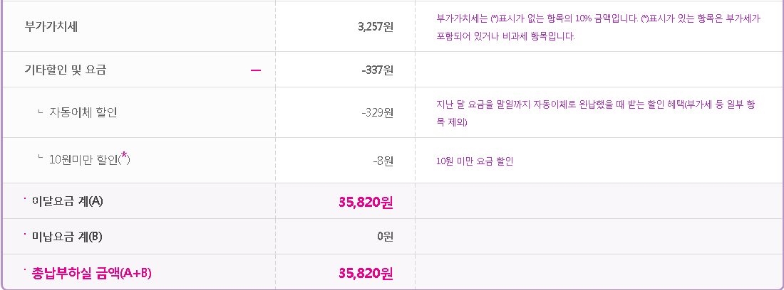현재 제가 매달 납부하는 요금은 35,820원이며 상세 내역은 아래 첨부 참조 부탁 드립니다.
