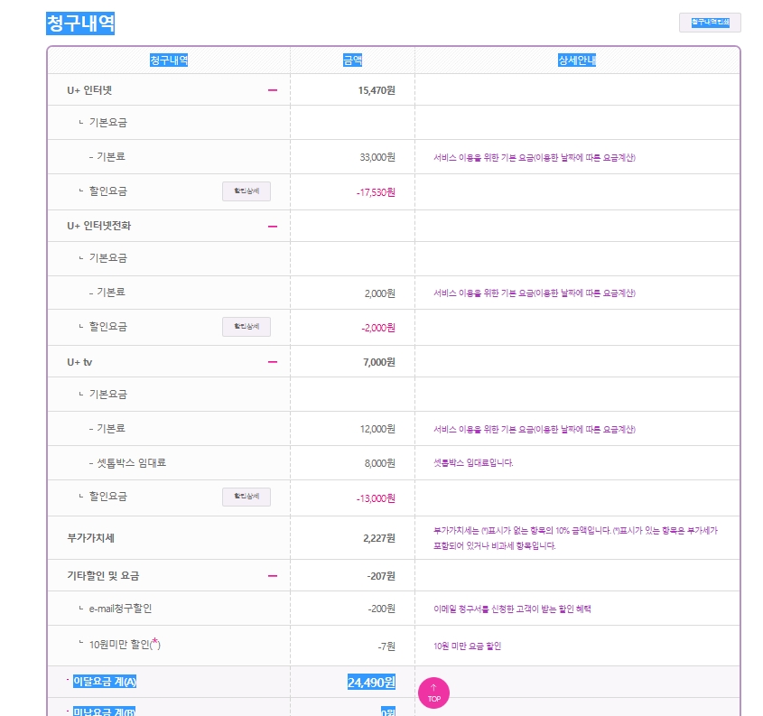 인터넷은 쓰리콤보 혜택으로 이미 저렴하게 이용중이시며! (원래는 18,700원인데 더 저렴하네요)