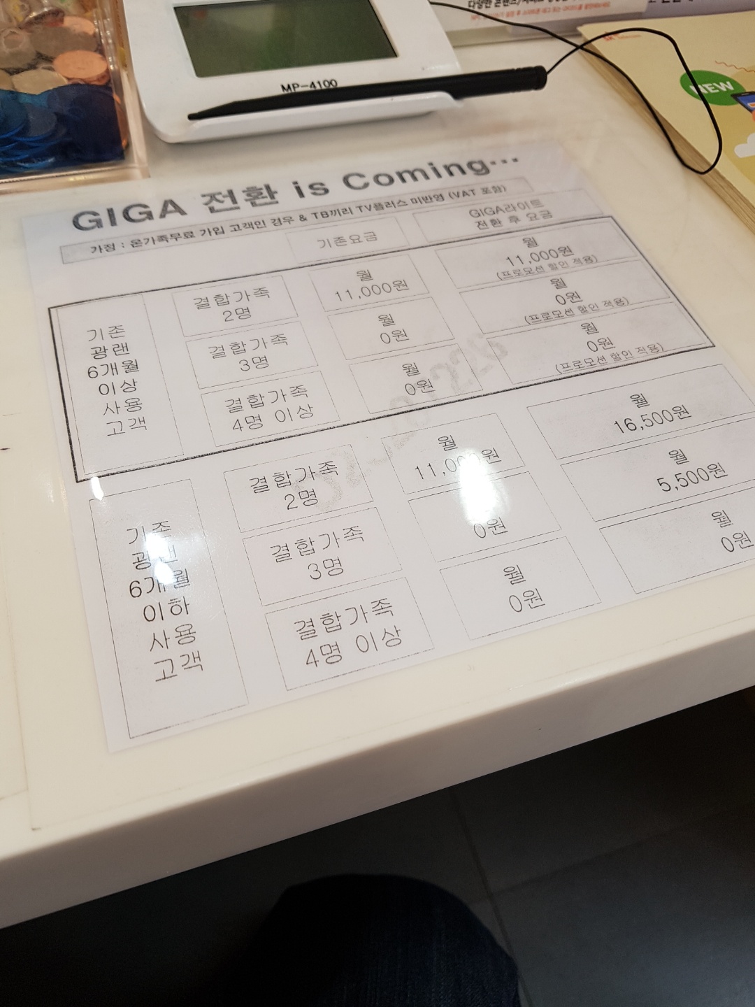 sk결합상품 이용 중, 얼마전에 광랜을 기가라이트로 업글 하였습니다.
