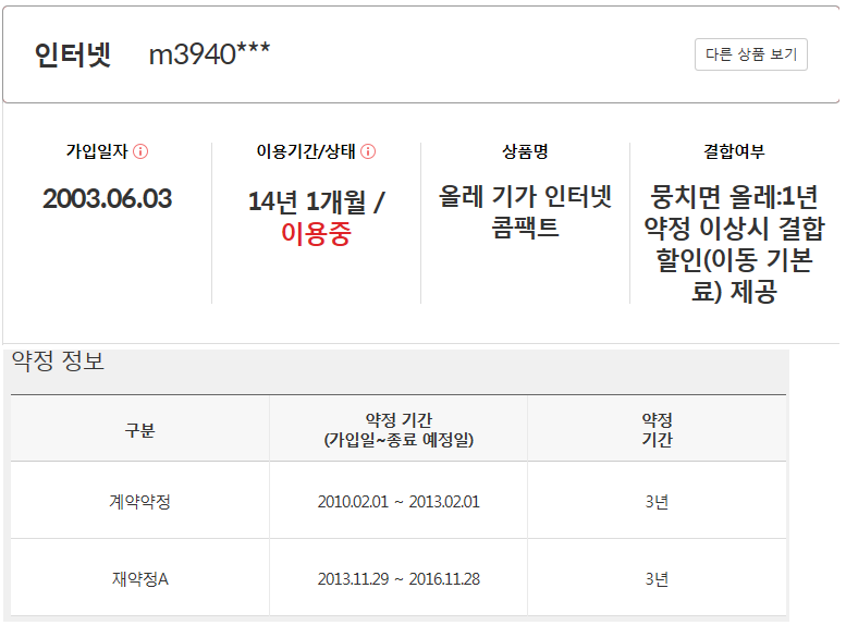 저희는 오래전부터 이용해서 인터넷 사용기간을 보니