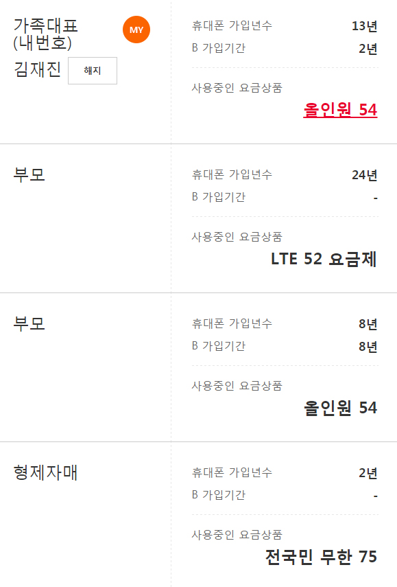1) 가족분들 모두 SK에서 핸드폰을 사용중이시고,