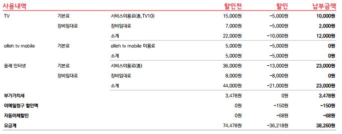 이것은 TV와 결합되지 않은 요금이거든요ㅠ