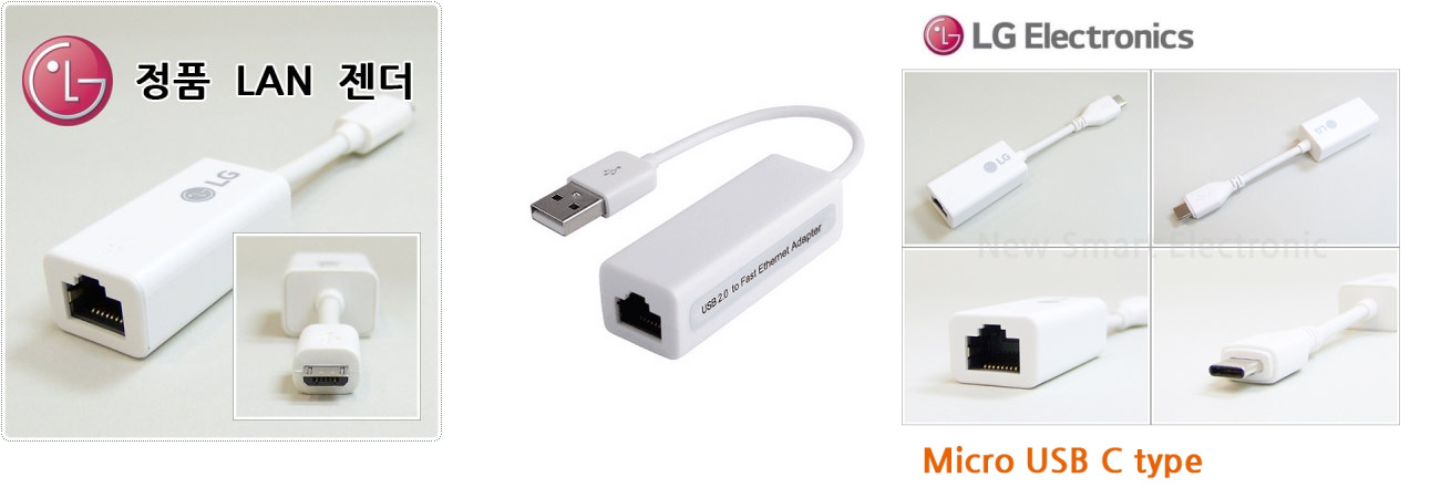 여기에 USB <-> 랜선 젠더 / 혹은 마이크로 핀 <-> 랜선 젠더 등을 구비하셔서