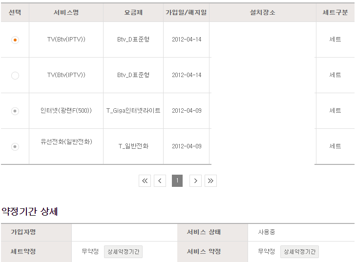 2) 본가 SK인터넷의 약정만료일?