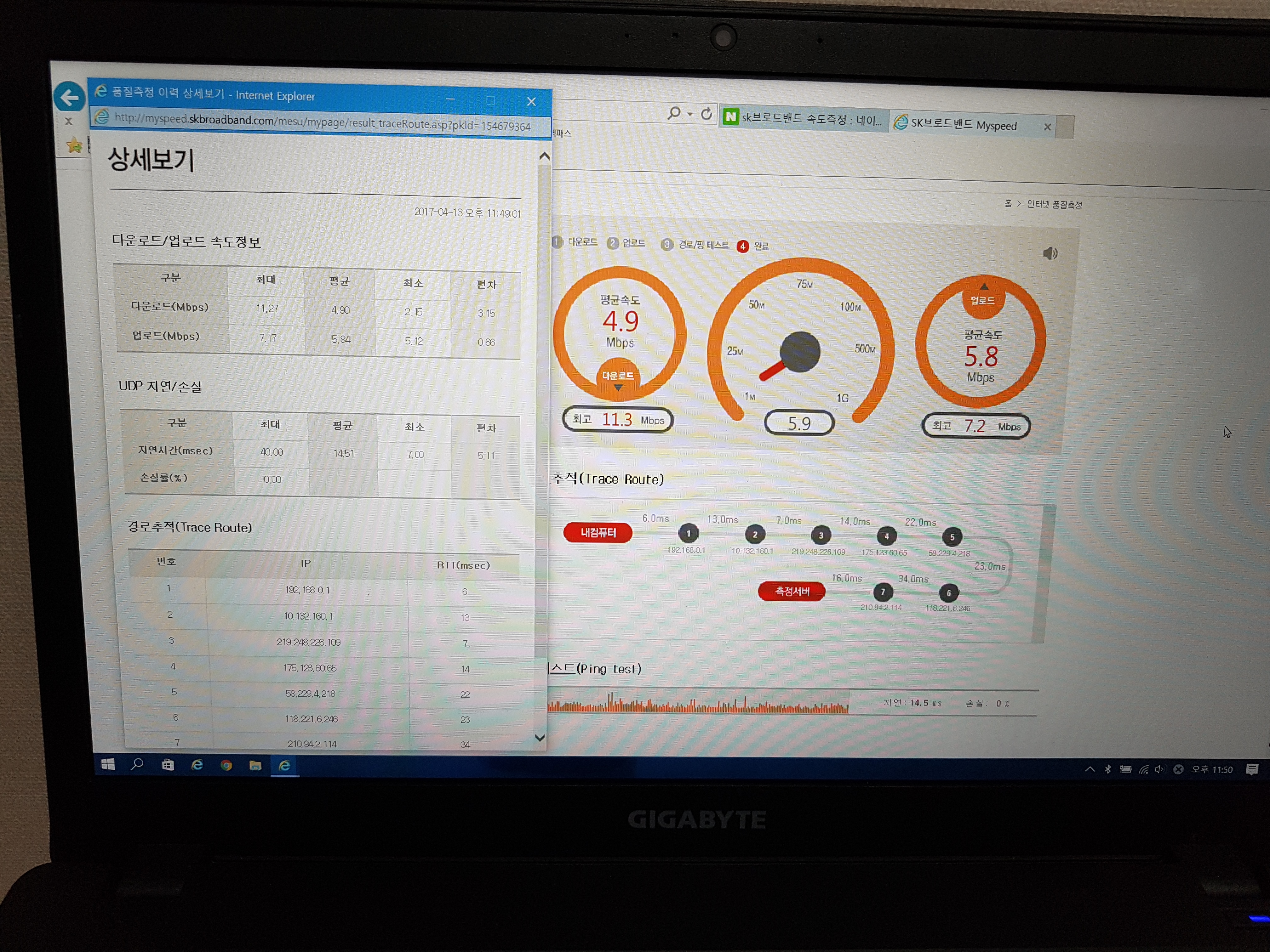인터넷 속도 측정한 값을 꼭 보여드리면서