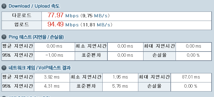 다운로드와 업로드, 핑 속도가 얼마나 나오는지 말씀해주세요~