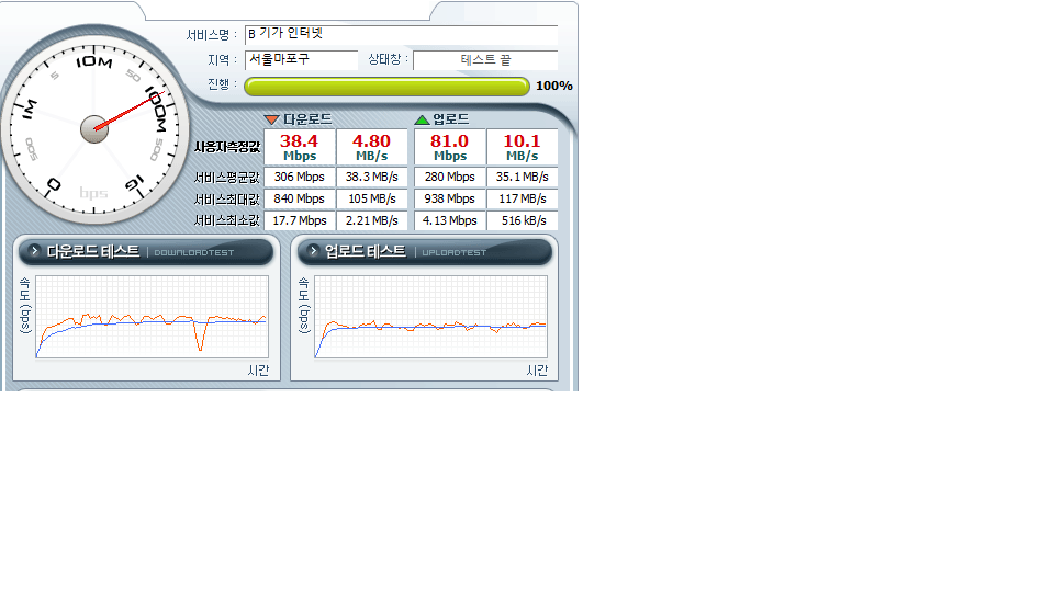 혹시 공유기 문제인가 싶어 여쭈어보고 싶어, 아래 유선연결하여 벤치비에서 측정한 속도값 첨부 합니다.