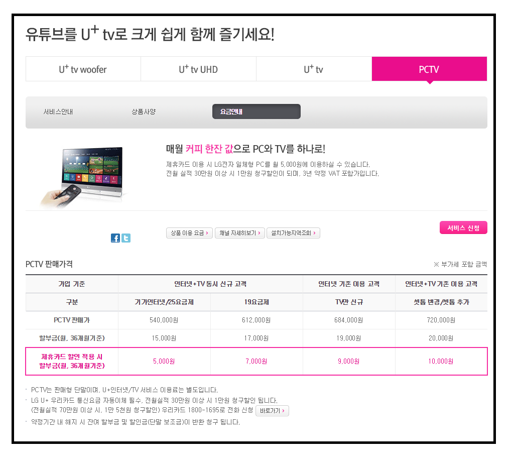 그래서 인터넷이랑 TV 가입하는 김에 LG PC TV를 저렴하게 구매하면 좋겠다고 생각이 들더라구요~