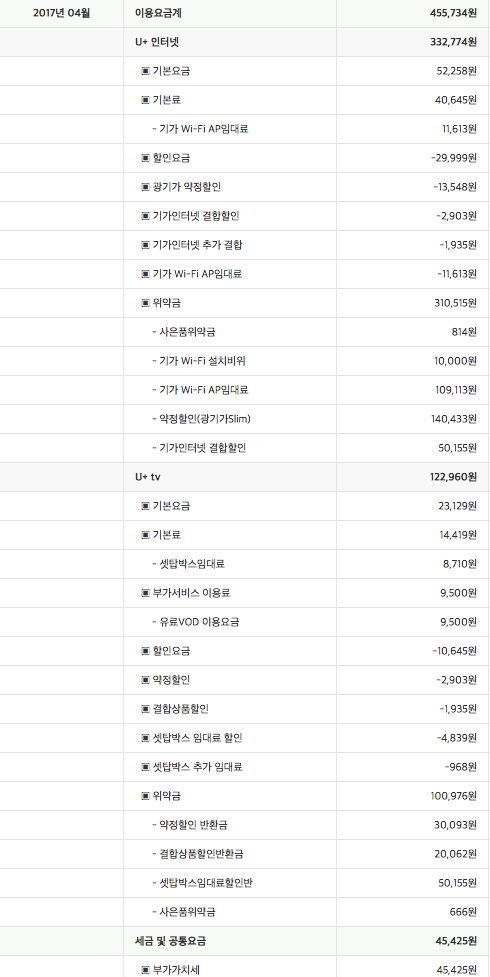 사은품 위약금과 설치비 위약금이 남아있는 것을 보니..