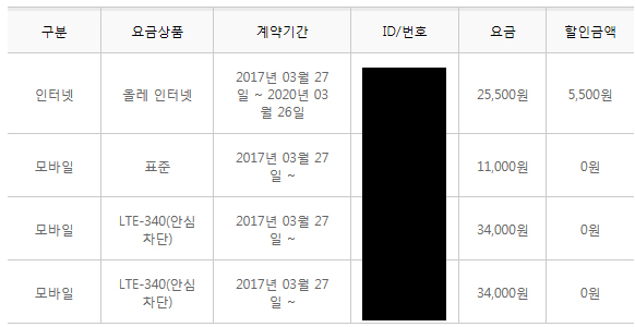 핸드폰 결합할인이 추가로 -5,500원이 적용되니