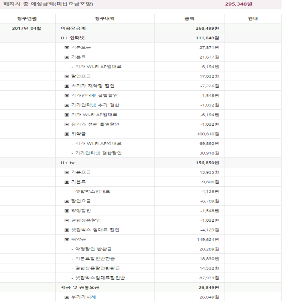 그래서인지 인터넷 위약금은 10만원 정도인데 반해, TV 위약금이 15만원정도라,