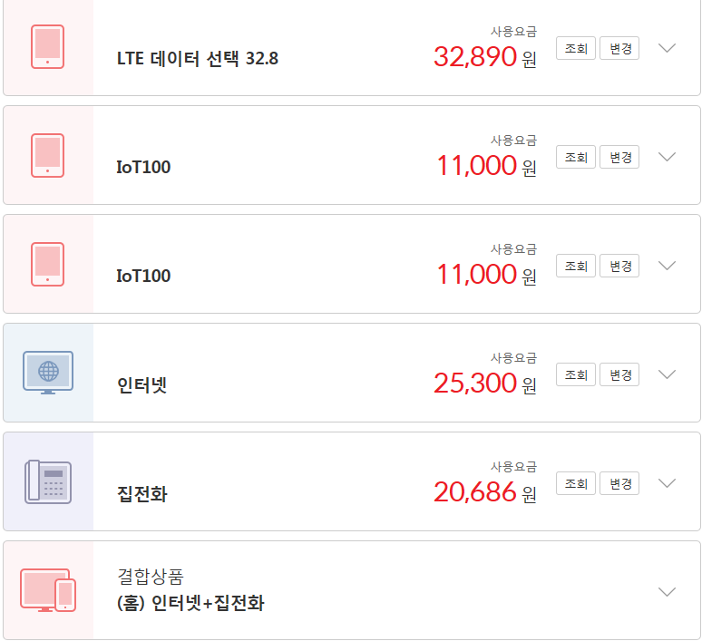 그런데..! 요금내역을 살펴보니 IoT도 함께 사용중이신 것 같네용;;